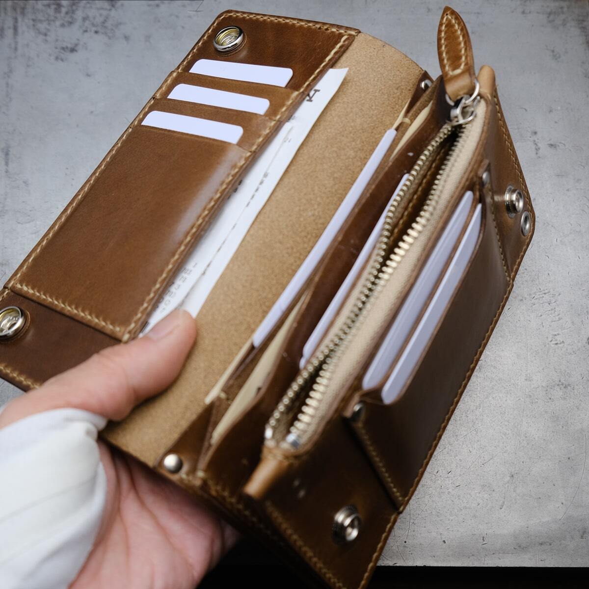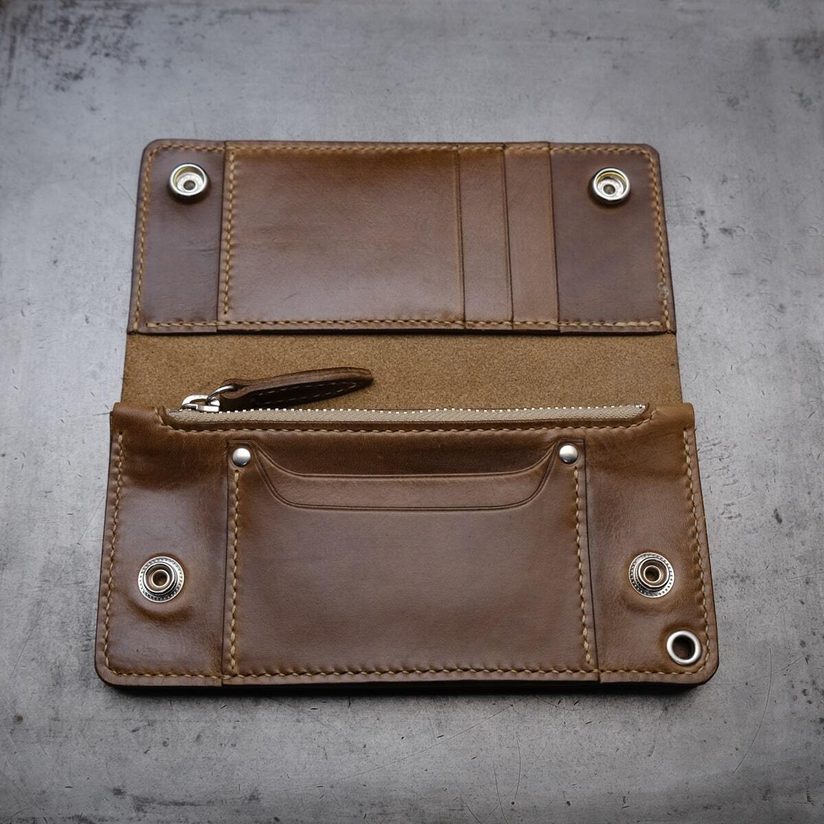 外観はワイルドでありながら、整然と収納できるトラッカーウォレットです。