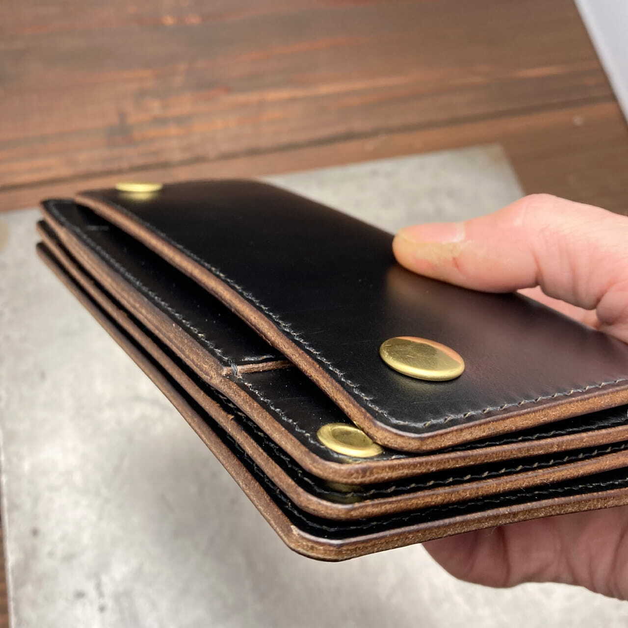 使用する革全てホーウィン社クロムエクセルです。使い始めからクッタリと柔らかめな素材感が魅力です。また、茶芯レザー特有の経年変化を愉しんでいただけます。