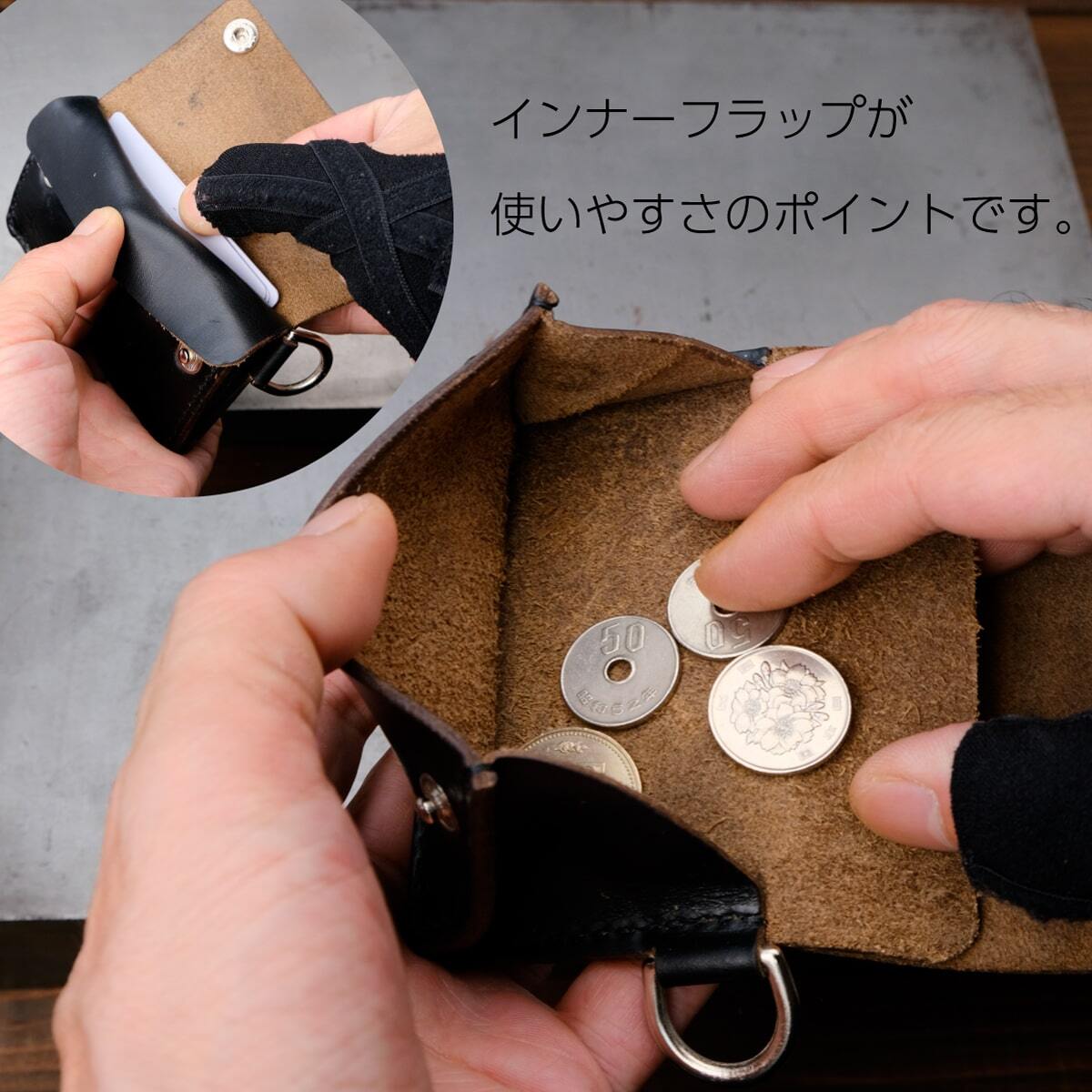 おつりをザザっと入れ、蓋を閉めてフロントポケットに突っ込む。そんな使い方が似合う、ラフで無骨な佇まい。