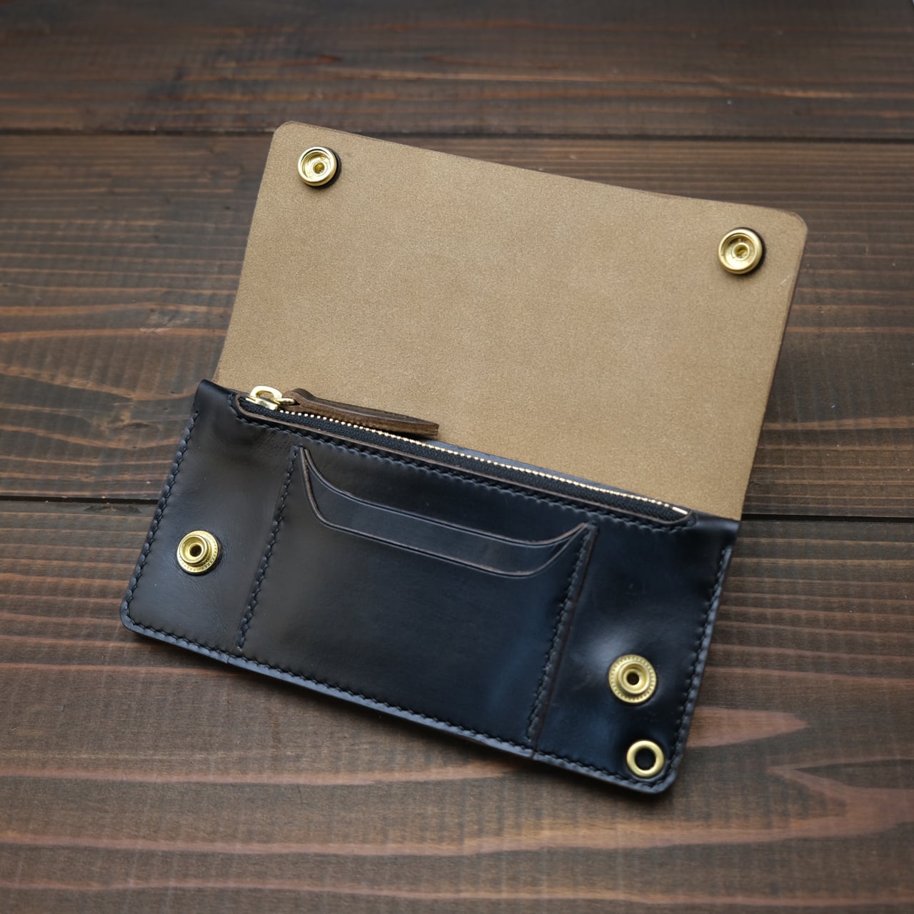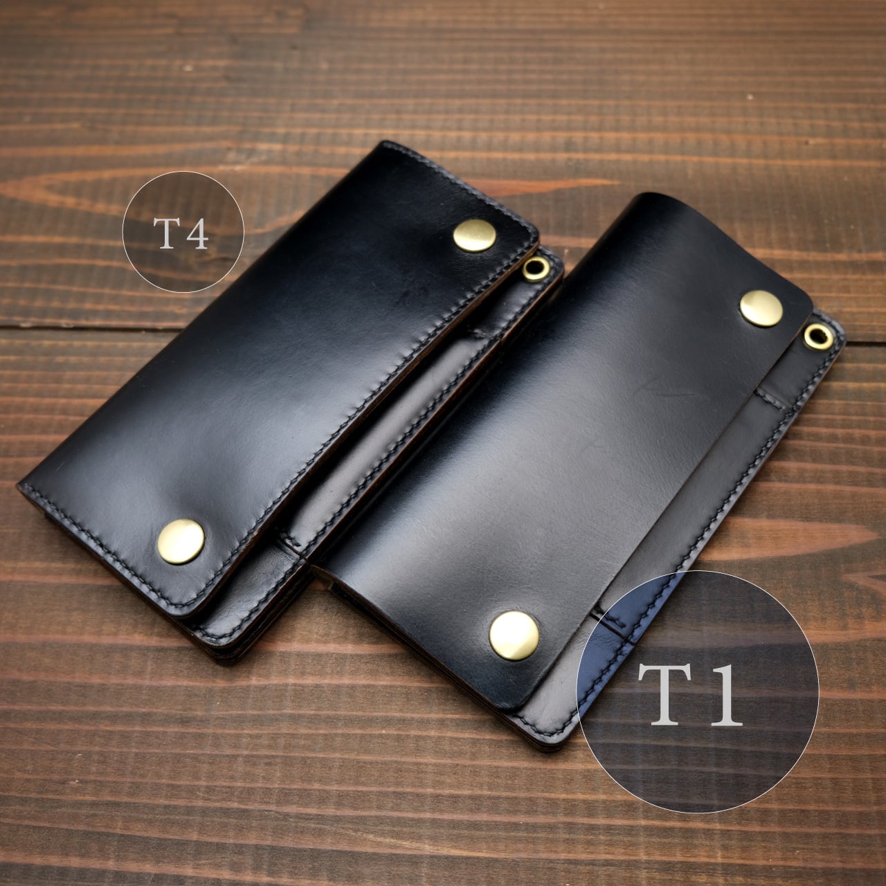 トラッカーウォレット T1は、2層、フラップ収納無し、当店で最もシンプルなトラッカーウォレットです。シンプルですが収納力は十二分です。